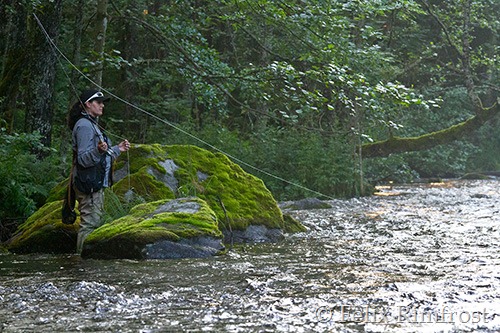När vattnet är lägre finns här en stenbro som man kan smyga ut på för att fiska av poolen nedanför..