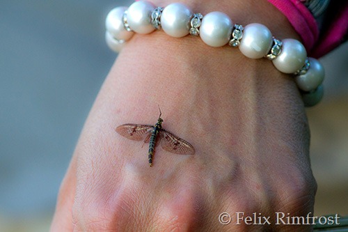 Tvätta händerna efter en tuff drillning, ja det skulle man kunna önska men i det här fallet var det en slända som fastnade på min hand..