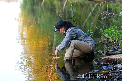 Här står jag i solnedgången, vid Solgenån, och spanar in vattenflödet och eventuella vak..